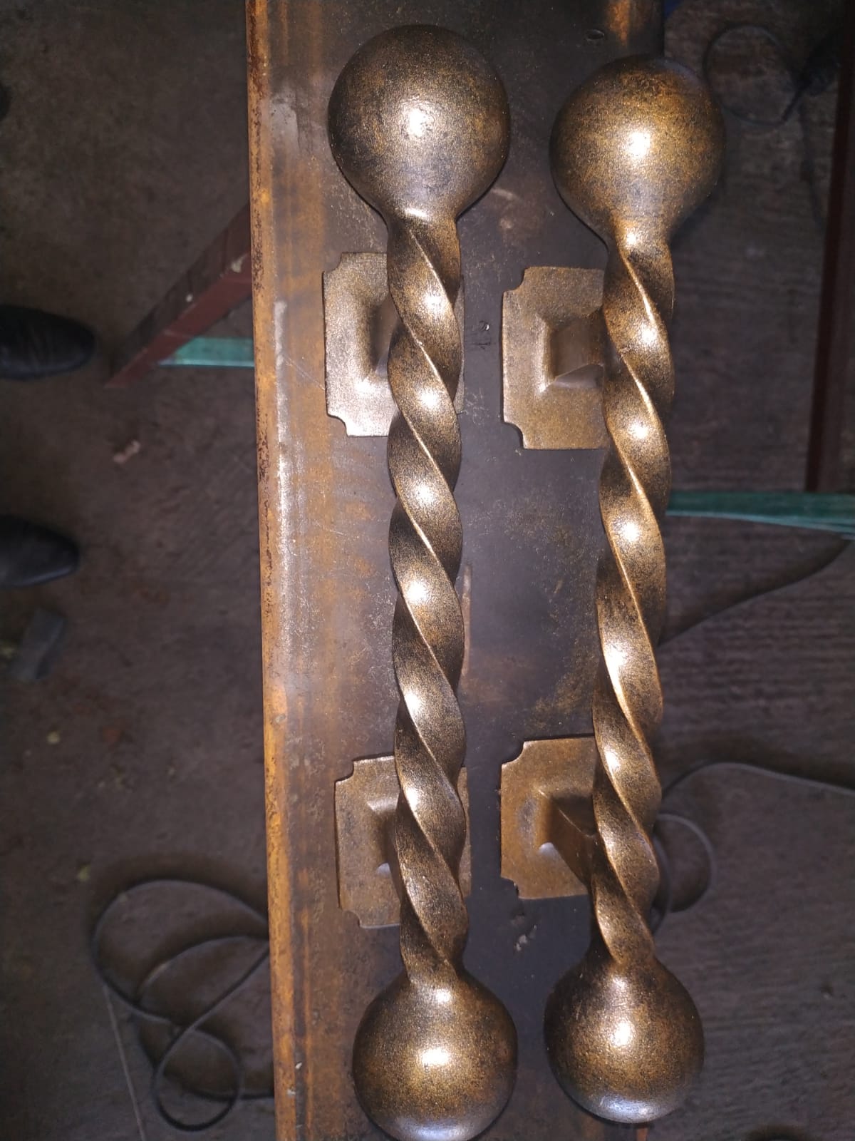 Trabajamos con diversos estilos, desde minimalistas hasta ornamentales, y con materiales como acero al carbón o inoxidable, combinados con acabados en cobre, bronce, negro mate o plata decorada. Cada pieza es fabricada a mano, cuidando cada detalle estético y ergonómico para ofrecer un agarre cómodo y elegante.