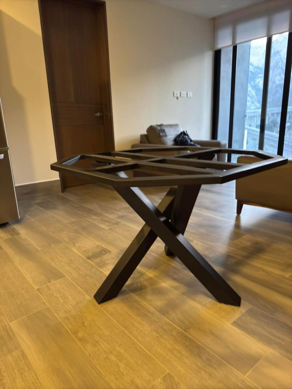 Cada mesa es elaborada a medida, considerando el uso, dimensiones del espacio y el estilo decorativo del cliente. Nuestros diseños pueden incluir bases geométricas, marcos reforzados y elementos decorativos que hacen de cada pieza una obra de arte funcional.
